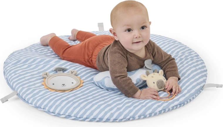 Accompagne le développement naturel dès les premiers jours : position allongée confortable, tummy time renforçant avec coussinet de soutien, et position assise en toute sécurité avec les jouets à portée de main.