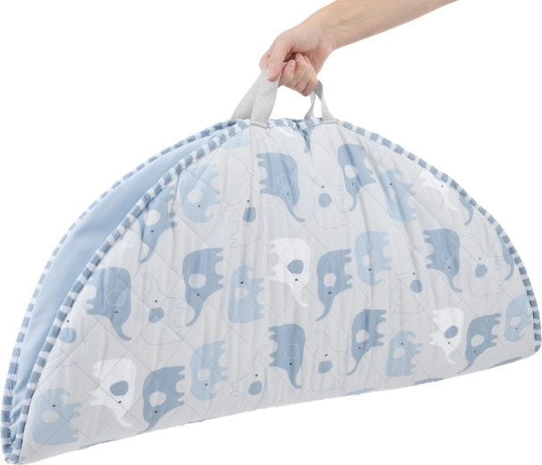 Tapis luxueusement doux avec deux imprimés neutres, lavable en machine. Se plie en un format compact avec poignées pour un transport aisé.