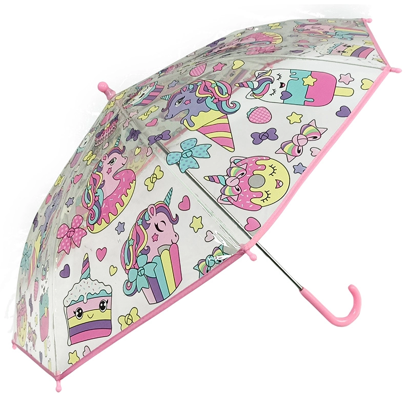 Adorable parapluie transparent pour enfants avec motif de licornes, il protège de la pluie tout en permettant aux enfants de voir confortablement la route. Grâce à sa construction légère et à sa manipulation facile, il convient même aux plus petits. Son design transparent, son motif licorne apprécié et son ouverture facile en font un accessoire idéal pour la maternelle et les sorties.