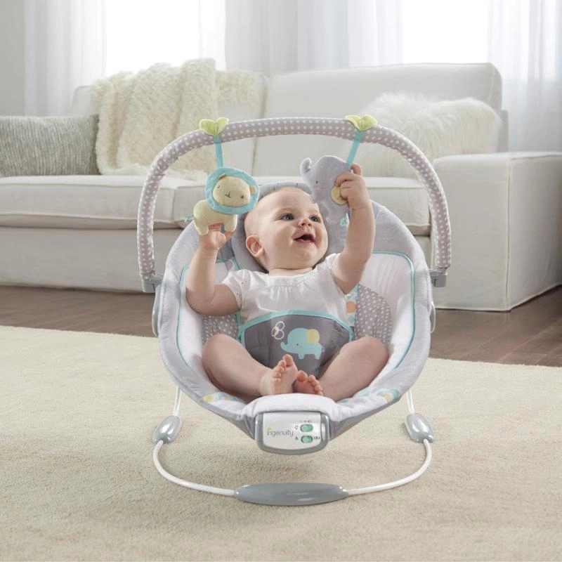 Apaisez votre bébé en tout confort avec le transat Ingenuity Morrison, qui offre de douces vibrations, 7 mélodies apaisantes avec arrêt automatique après 15 minutes et une housse en doux suédine pour un maximum de confort. Grâce à son arche amovible avec deux jouets, son harnais 3 points et ses patins antidérapants, il est sûr, pratique et idéal dès la naissance jusqu’à 9 kg.