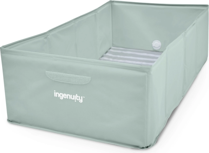 La doublure intérieure imperméable et à séchage rapide est facile à entretenir et permet de remettre rapidement la douche ou la baignoire en état. Grâce à sa construction légère et à son faible encombrement, TuckAway est parfaite pour les vacances, les sorties et les visites chez les grands-parents. Ses dimensions spacieuses offrent un confort aux enfants de 12 à 60 mois.
