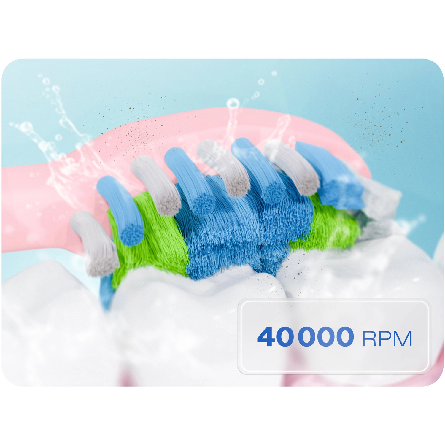 - Douce pour les gencives : élimine plusieurs fois plus de plaque qu’une brosse manuelle tout en restant délicate avec l’émail.