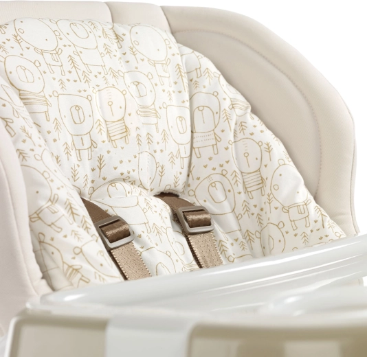 Le plateau amovible à 2 positions et la housse amovible et facile à entretenir facilitent l’usage quotidien. La structure stable avec embouts antidérapants et harnais de sécurité offre confiance et sécurité à chaque activité – que bébé dorme, mange ou se détende. Après utilisation, pliez simplement la chaise en dimensions compactes pour un rangement pratique.