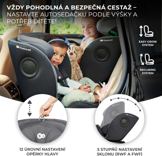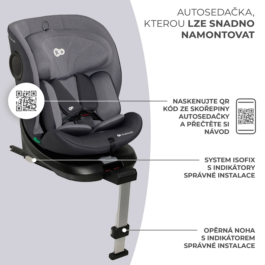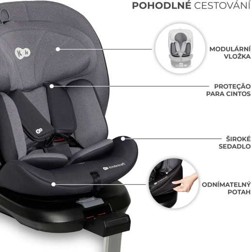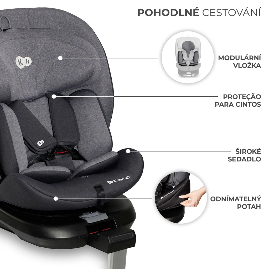 Le siège auto pivotant KINDERKRAFT I-360 i-Size pour une taille d’enfant de 40–150 cm offre une sécurité et un confort maximaux dès la naissance jusqu’à environ 12 ans. Il propose le dos à la route (RWF) jusqu’à 4 ans, un système pivotant à 360° pour installer facilement l’enfant, l’ISOFIX avec indicateurs de bonne installation et une jambe de stabilisation. La protection est renforcée par H-GUARD et le SIDE PROTECT SYSTEM+, tandis que l’appui-tête à 12 positions, 5 inclinaisons et les inserts doux en mousse à mémoire de forme assurent le confort à chaque trajet.