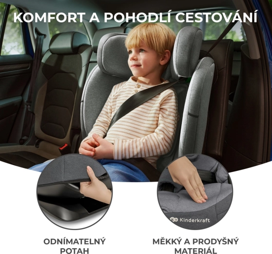 Le siège auto Kinderkraft Oneto3 i-Size évolue avec votre enfant de 76 à 150 cm. Il répond au dernier standard R129 i-Size et s’inspire du modèle primé ONETO3 (ADAC). Grâce à ISOFIX et TOP TETHER, vous l’installez rapidement et correctement – des indicateurs de montage aident à éviter les erreurs. Les enfants plus grands peuvent être attachés avec la ceinture 3 points du véhicule, avec possibilité d’utilisation même sans ISOFIX.