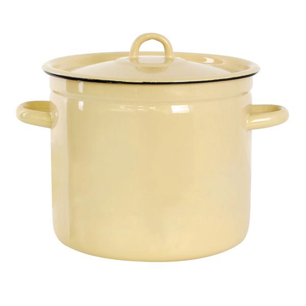 Casserole émaillée pratique et résistante d’un volume de 7 l avec couvercle et 2 poignées pour une manipulation aisée. Convient à tous les types de plaques, y compris l’induction, et grâce à son décor beige avec légumes, elle fait également office de complément déco stylé pour la cuisine ou la maison de campagne.
