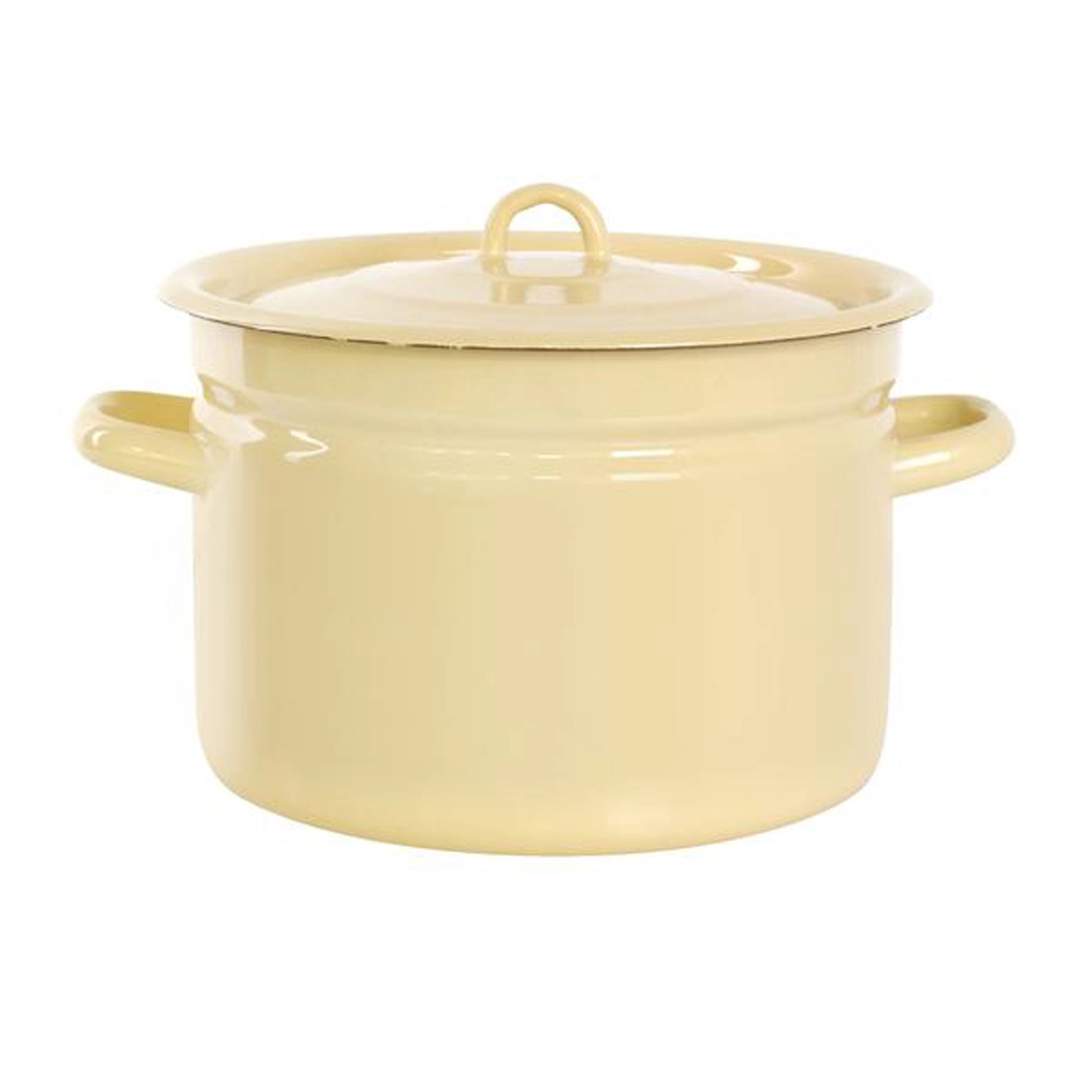 Casserole émaillée traditionnelle de 9 l, idéale pour la cuisine quotidienne. Elle offre une répartition uniforme de la chaleur, est compatible avec tous les types de plaques, y compris l’induction, et ses deux poignées robustes assurent une manipulation en toute sécurité. Son coloris beige élégant avec motif de légumes embellira toute cuisine ou maison de campagne.