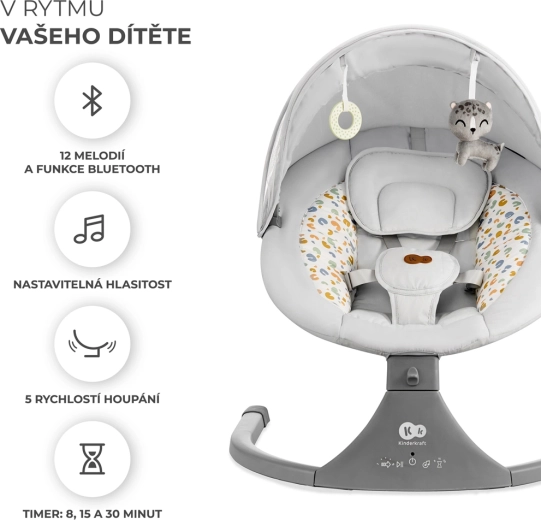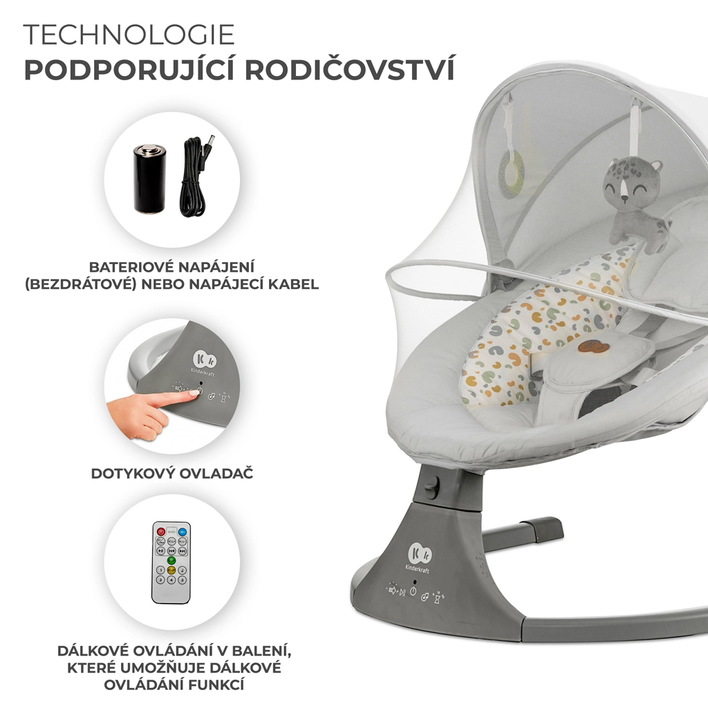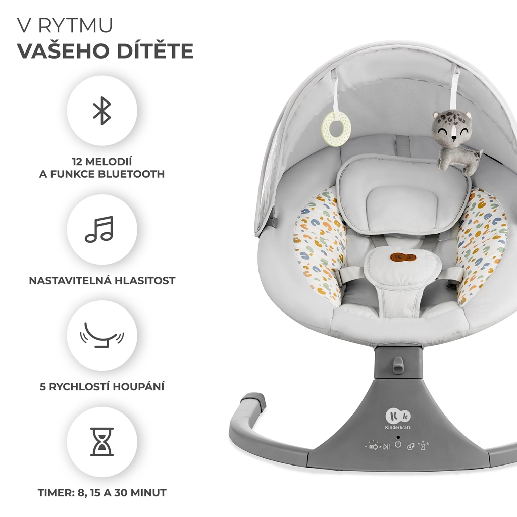 Le transat Kinderkraft LUMI combine technologies modernes et design sécurisé pour un endormissement confortable de la naissance jusqu’à 9 kg. Grâce au bercement latéral, bébé se sent comme dans les bras, tandis que le moteur silencieux ne perturbe pas le sommeil. Avec la connectivité Bluetooth et l’entrée USB, diffusez facilement les berceuses préférées directement depuis votre téléphone.