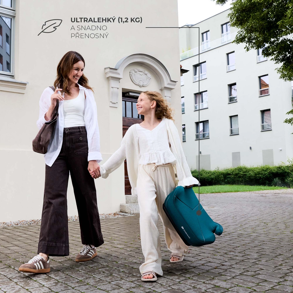 Le siège est ultraléger (1,2 kg), vous pouvez donc le transférer facilement d’un véhicule à l’autre. L’installation est intuitive à l’aide de la ceinture de sécurité 3 points, tandis que le siège large et moelleux en mousse de qualité assure le confort même lors de longs trajets. Les poignées ergonomiques aident à guider la ceinture à la bonne hauteur et la housse amovible est lavable en machine.