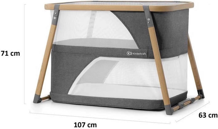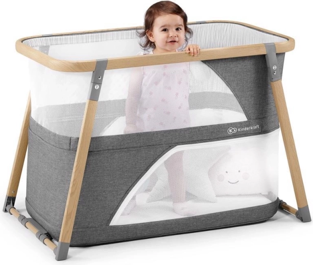 Le lit multifonction 4-en-1 KIDERKRAFT Sofi en élégant coloris gris combine lit bébé, lit de voyage, parc et balancelle. Il offre un pliage rapide en 5 secondes, un cadre en aluminium léger avec décor bois, des parois latérales en maille respirante et un matelas en mousse de qualité pour un sommeil et un jeu sûrs et confortables à la maison comme en déplacement.