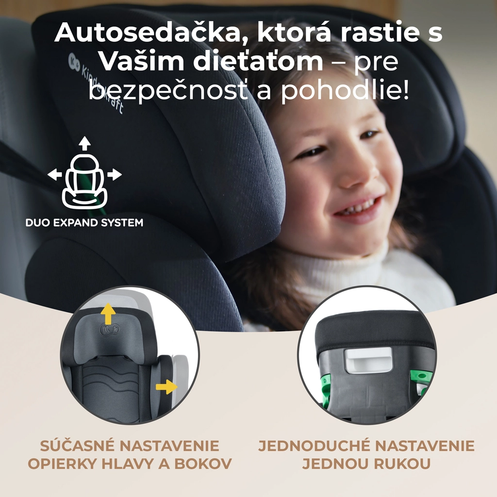 Kinderkraft XPAND 2 i-Size apporte un niveau supérieur de sécurité et de confort pour les trajets quotidiens des enfants de 100 à 150 cm. Sa conception répond à la dernière norme R129/03 i-Size et a été testée dans des laboratoires européens renommés. Grâce aux connecteurs ISOFIX et au guidage de ceinture avec indicateur vert, l’installation est rapide et intuitive.