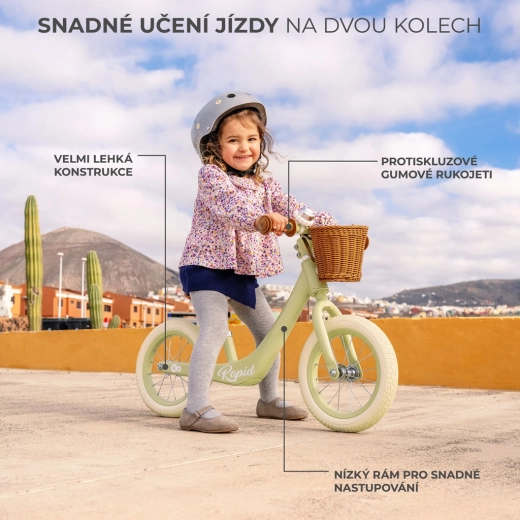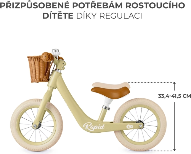 Découvrez la joie des premières balades avec la draisienne KINDERKRAFT RAPID 2 Savannah Green. Son style rétro avec panier pratique séduit au premier regard, tandis que sa conception soignée favorise le développement de l’équilibre et de la motricité. Grâce à son cadre en alliage de magnésium léger (magnésium), le vélo ne pèse qu’environ 3,7 kg, se transporte facilement et offre une durabilité exceptionnelle.