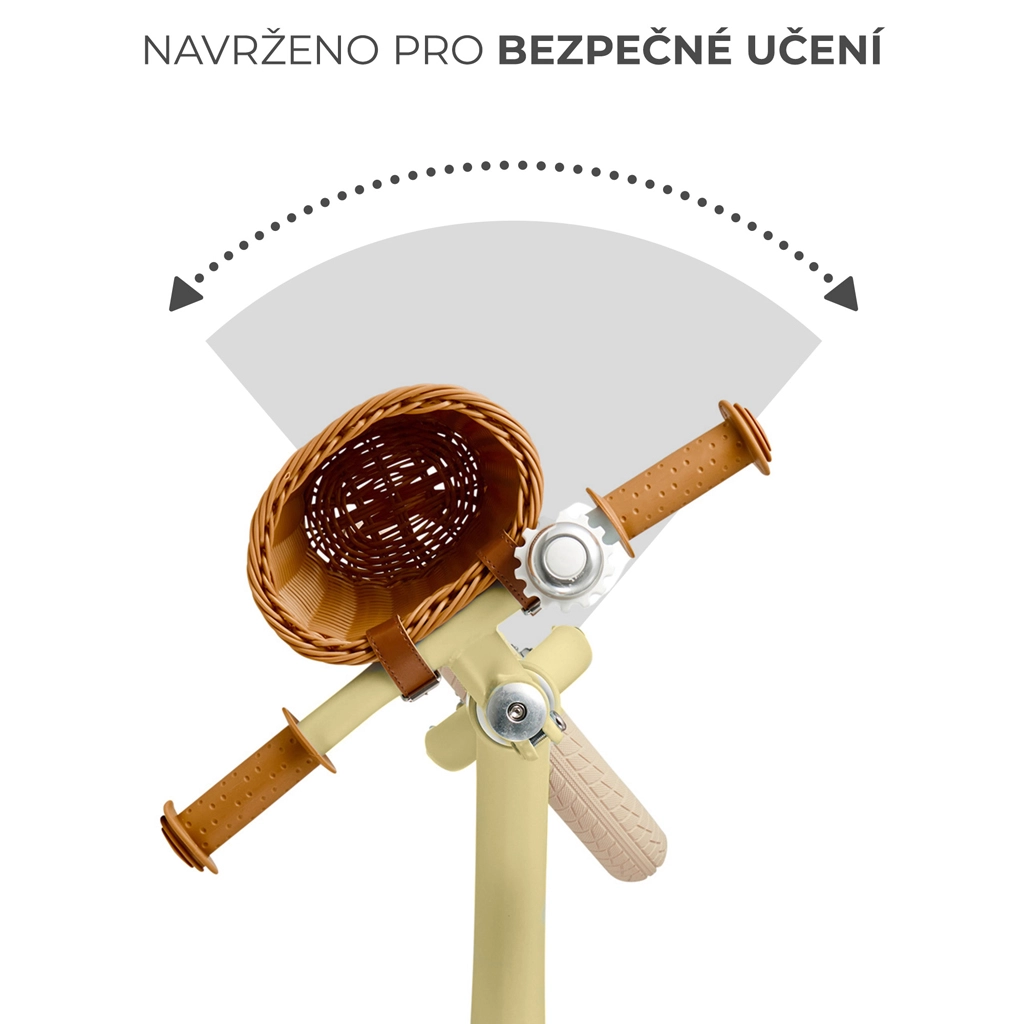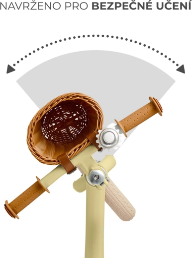 Les grandes roues en caoutchouc avec roulements absorbent parfaitement les irrégularités et assurent une conduite fluide sur trottoir comme sur chemin forestier. La selle réglable (33,5–41,5 cm) s’adapte aux enfants qui grandissent vite et le cadre bas facilite la montée même pour les plus petits. La limitation de l’angle de braquage du guidon protège l’enfant contre les changements de direction brusques et incontrôlés, et les poignées en caoutchouc antidérapantes garantissent une prise en main sûre.
