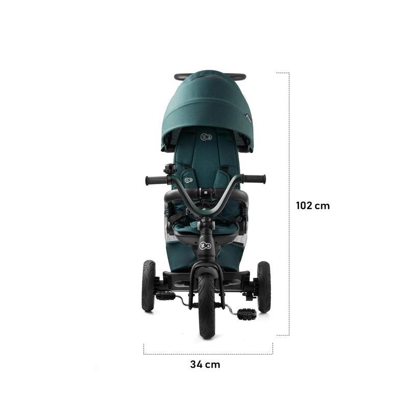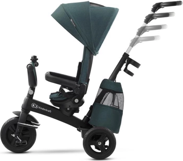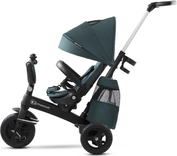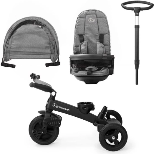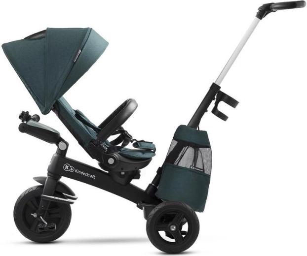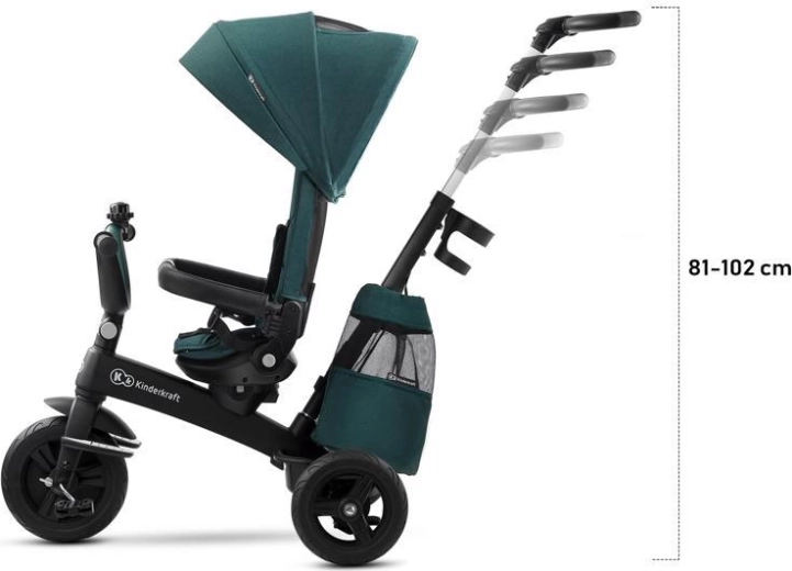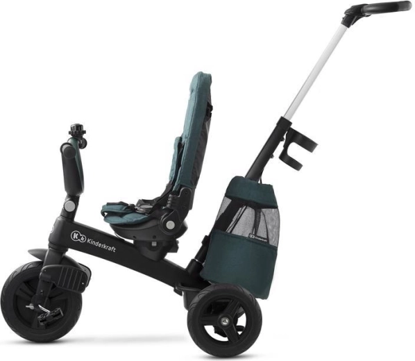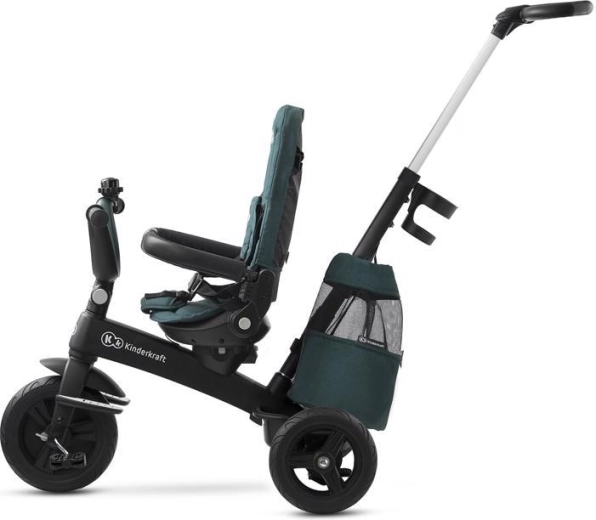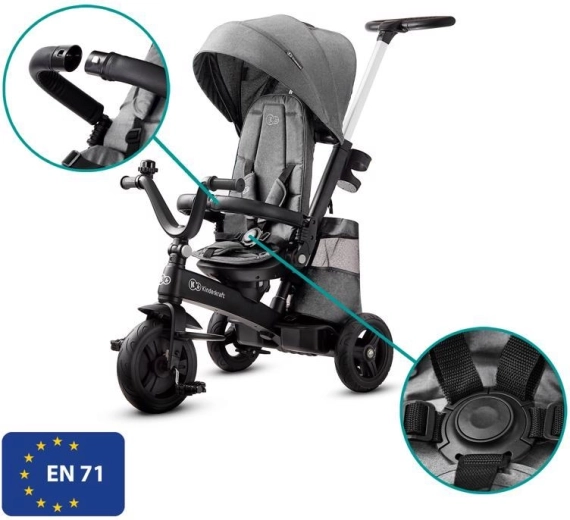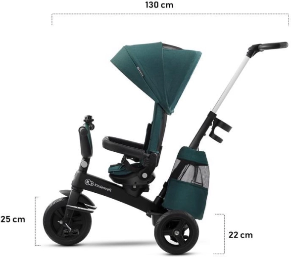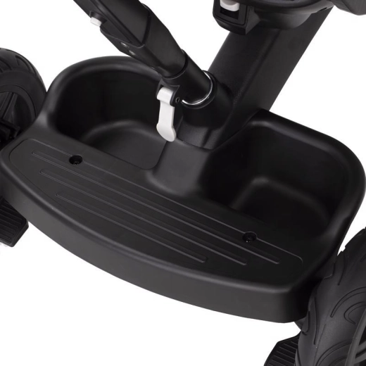 L’entretien aisé et les accessoires malins simplifient l’usage quotidien : housse amovible pour un nettoyage facile, agréable arceau en similicuir, repose-pieds pliants et équipement pratique – porte-gobelet, sonnette, sac/à dos et panier. Le tricycle est conforme à la norme EN 71 et prêt pour découvrir le monde en toute sécurité.