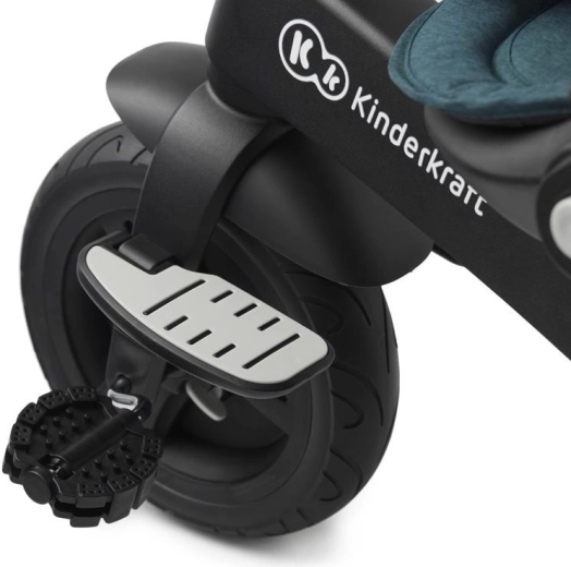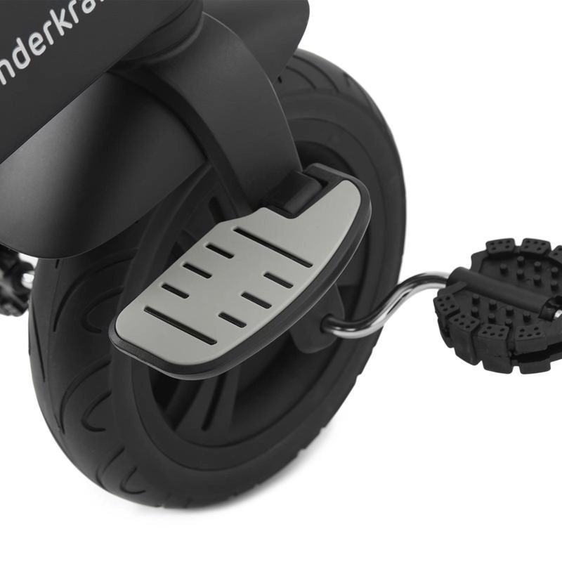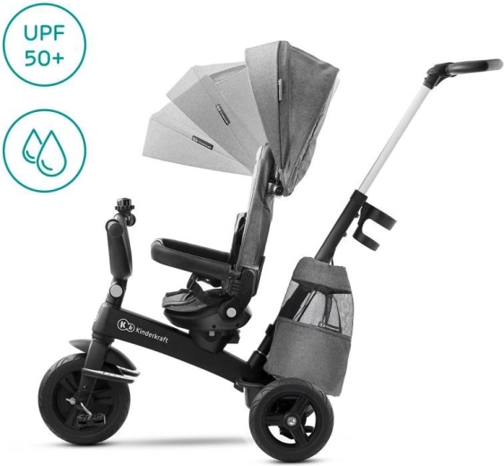 Le cadre en alliage de magnésium est remarquablement léger et rigide, les roues arrière à roulements et les pneus en PU gèrent aussi bien les trottoirs urbains que les chemins de parc. La capote imperméable avec UPF 50+ protège du soleil et de la pluie, tandis que les parents apprécieront la poignée télescopique à commande par boutons pour une direction précise et le frein de stationnement sur les roues arrière. Grâce à la fonction roue libre, les enfants apprennent à pédaler en toute sécurité sans entraîner le tricycle.