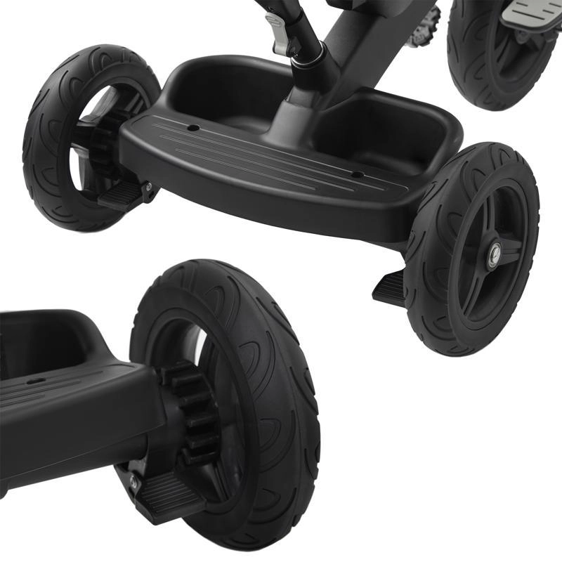 Ce tricycle premium combine les avantages d’une poussette et d’un vélo. Sa conception modulaire permet d’adapter facilement la configuration à l’âge et aux capacités de l’enfant – de la conduite guidée par le parent au pédalage autonome. Le siège pivotant à 360° (CLICK&TWIST) facilite le changement de sens en un instant, le haut dossier inclinable en position semi-allongée assure le confort même pendant la sieste, et les harnais de sécurité à 5 points avec protections maintiennent l’enfant en sécurité.