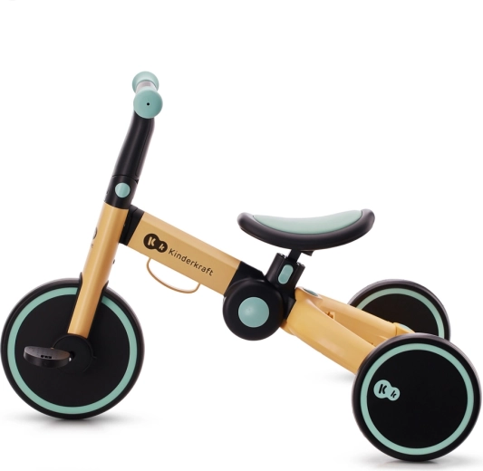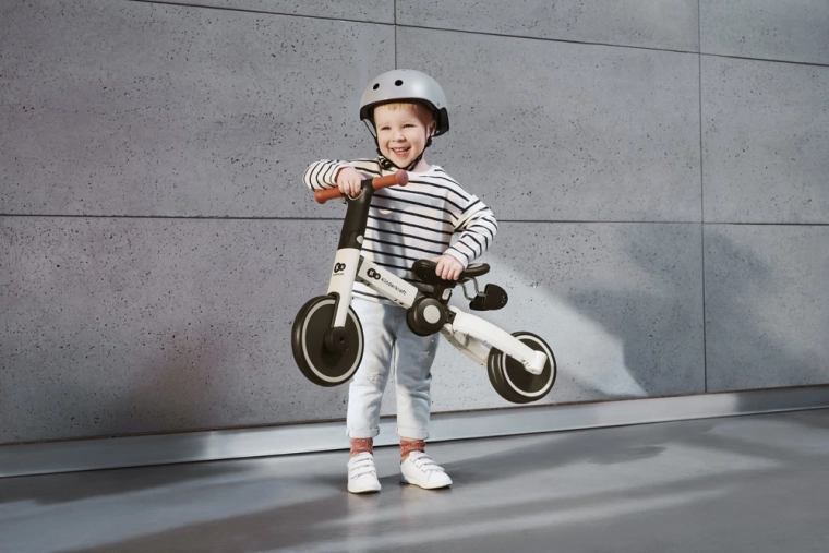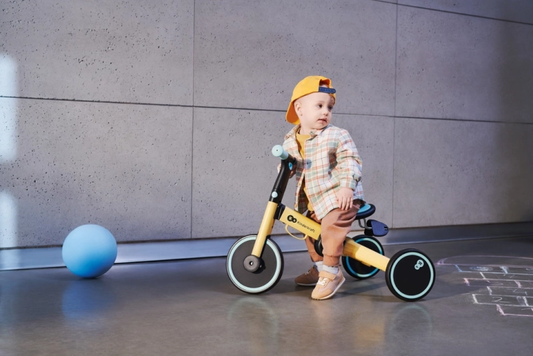 Pour un apprentissage plus sûr, le 4TRIKE est équipé d’un angle de rotation du guidon limité, de poignées en caoutchouc et de bords arrondis. La selle réglable (29,5–31,5 cm) assure une ergonomie adéquate à chaque étape de la croissance. Les roues en mousse EVA silencieuses ne détériorent pas le sol, permettant à l’enfant de s’entraîner à l’équilibre aussi à la maison.