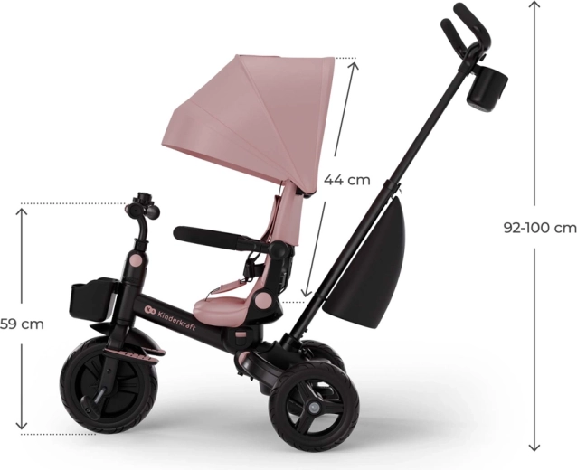 Le tricycle multifonction Kinderkraft AVEO 2 PLUS est le compagnon idéal de 9 mois à 5 ans. Il offre un siège pivotant à 360°, une position allongée, une capote avec UPF50+ et un contrôle parental. Grâce au pliage rapide, aux ceintures 5 points et à son riche équipement (sac, sonnette, porte-gobelet, paniers), il garantit confort, sécurité et praticité à chaque promenade.