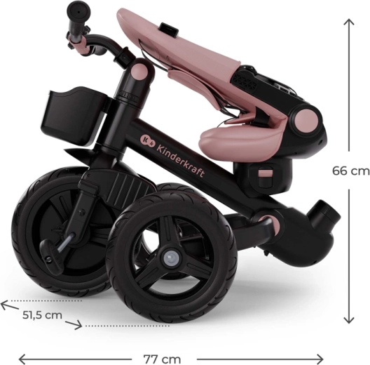 Les parents apprécieront la poignée réglable sur 3 hauteurs, la fonction de roue libre pour des premiers coups de pédale en sécurité ainsi que le pliage rapide et intuitif pour un rangement aisé dans le coffre ou l’armoire. La sécurité est assurée par des ceintures 5 points et une barre de sécurité, tandis que les accessoires pratiques – sac, sonnette, porte-gobelet et deux paniers – offrent de la place pour les jouets et l’essentiel.