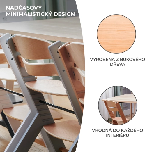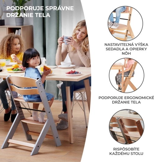 Kinderkraft Enock est une chaise haute intemporelle que vous pouvez aisément convertir en chaise ergonomique pour enfant plus âgé. Grâce au dossier réglable sur cinq positions, au repose-pieds ajustable et à l’assise large, elle s’adapte parfaitement à l’âge et à la taille de l’enfant. Le hêtre massif et le contreplaqué de qualité garantissent une stabilité exceptionnelle et une longue durabilité.
