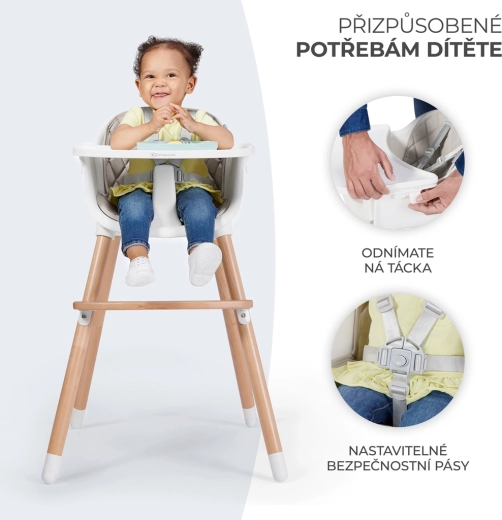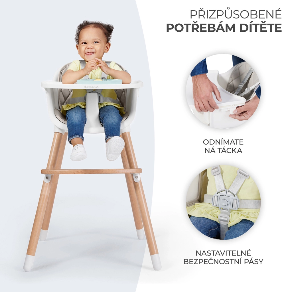 KINDERKRAFT Sienna est une chaise haute universelle qui s’adapte rapidement aux besoins de votre famille. La position haute est idéale pour les premières purées et les repas en commun, tandis que la variante basse convient parfaitement aux enfants plus grands pour les activités et les repas. Grâce à sa construction robuste, sa manipulation aisée et son entretien facile, c’est une solution pour de longues années.