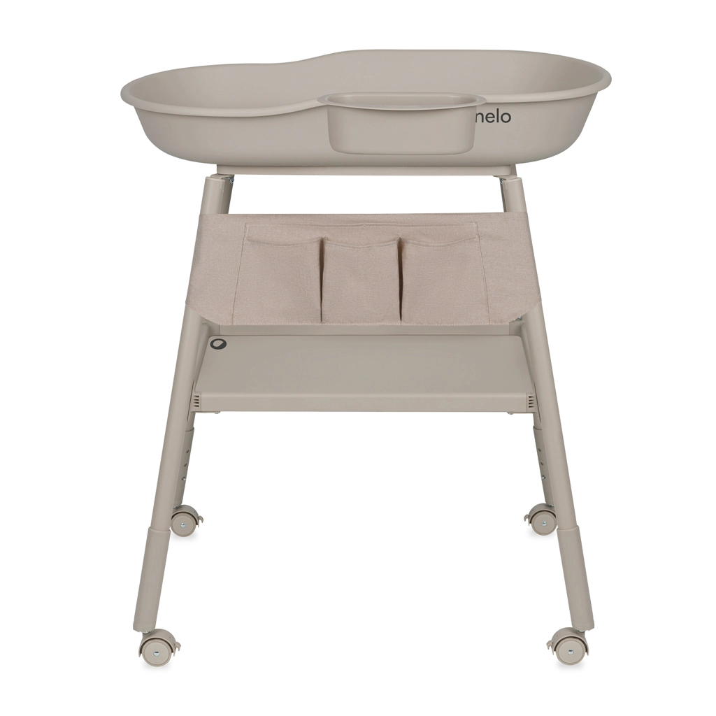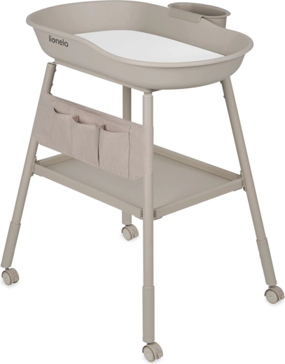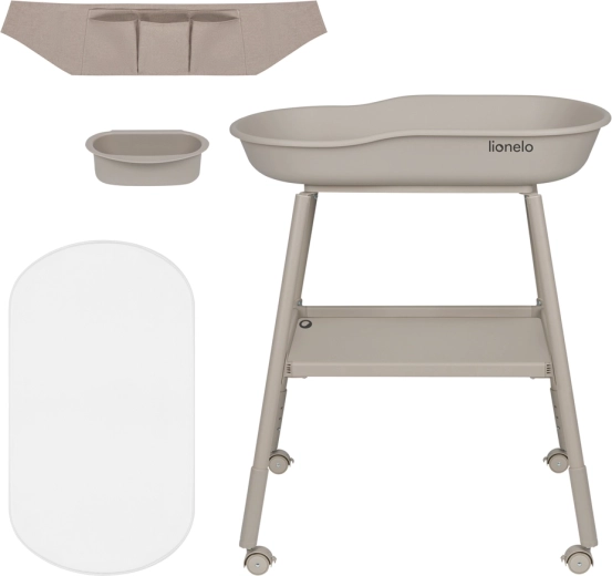 La pratique table à langer Lionelo Rosie en teinte Beige Sand combine des bords surélevés sécurisés, une mobilité aisée grâce à 4 roulettes avec freins et de larges espaces de rangement. Elle comprend un matelas en mousse avec housse imperméable, une hauteur de pieds réglable pour des soins ergonomiques, un organisateur en tissu avec 5 compartiments et un plateau latéral amovible pour les cosmétiques ou l’eau. Sa structure en acier stable assure sûreté et confort lors du change quotidien.