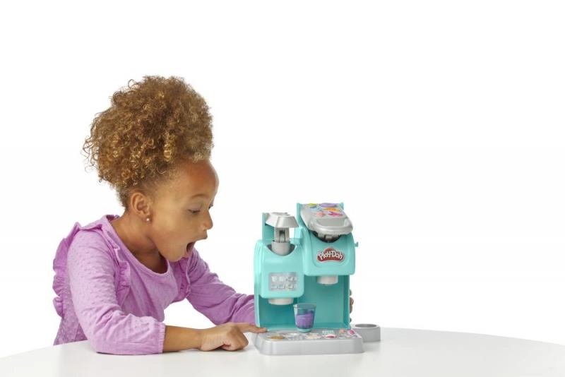 Transformez le coin jeux en café avec Play-Doh Café Coloré ! L’appareil turquoise à levier « extrude » la boisson dans le gobelet, vous la décorez d’une « crème fouettée » aérienne à la station de service et vous préparez de délicieuses sucreries grâce aux moules. Exposez ensuite le tout sur le présentoir transparent comme dans une véritable vitrine.