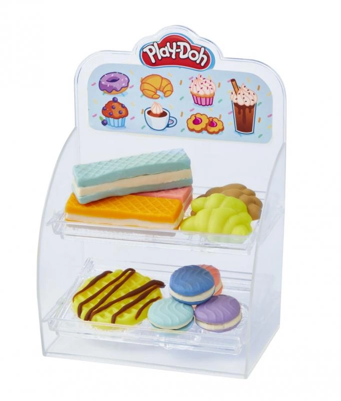 - Machine à boissons avec levier, station pour « crème fouettée », moules pour biscuits/cupcakes/donuts, gobelets et ustensiles, vitrine transparente, 8 pots de pâte à modeler Play-Doh, 20 accessoires au total
