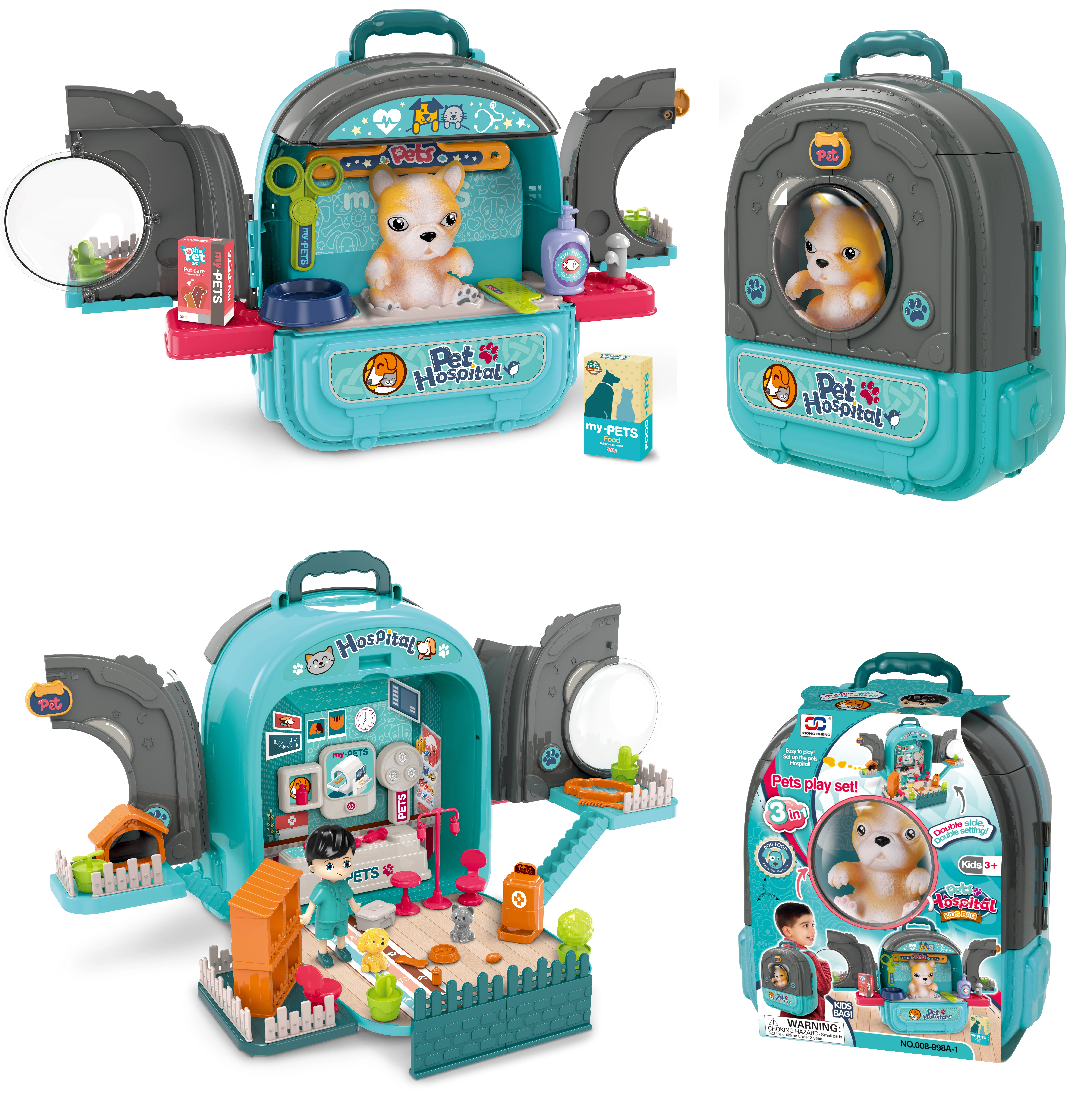 Hôpital pour animaux 3-en-1 en sac à dos bleu