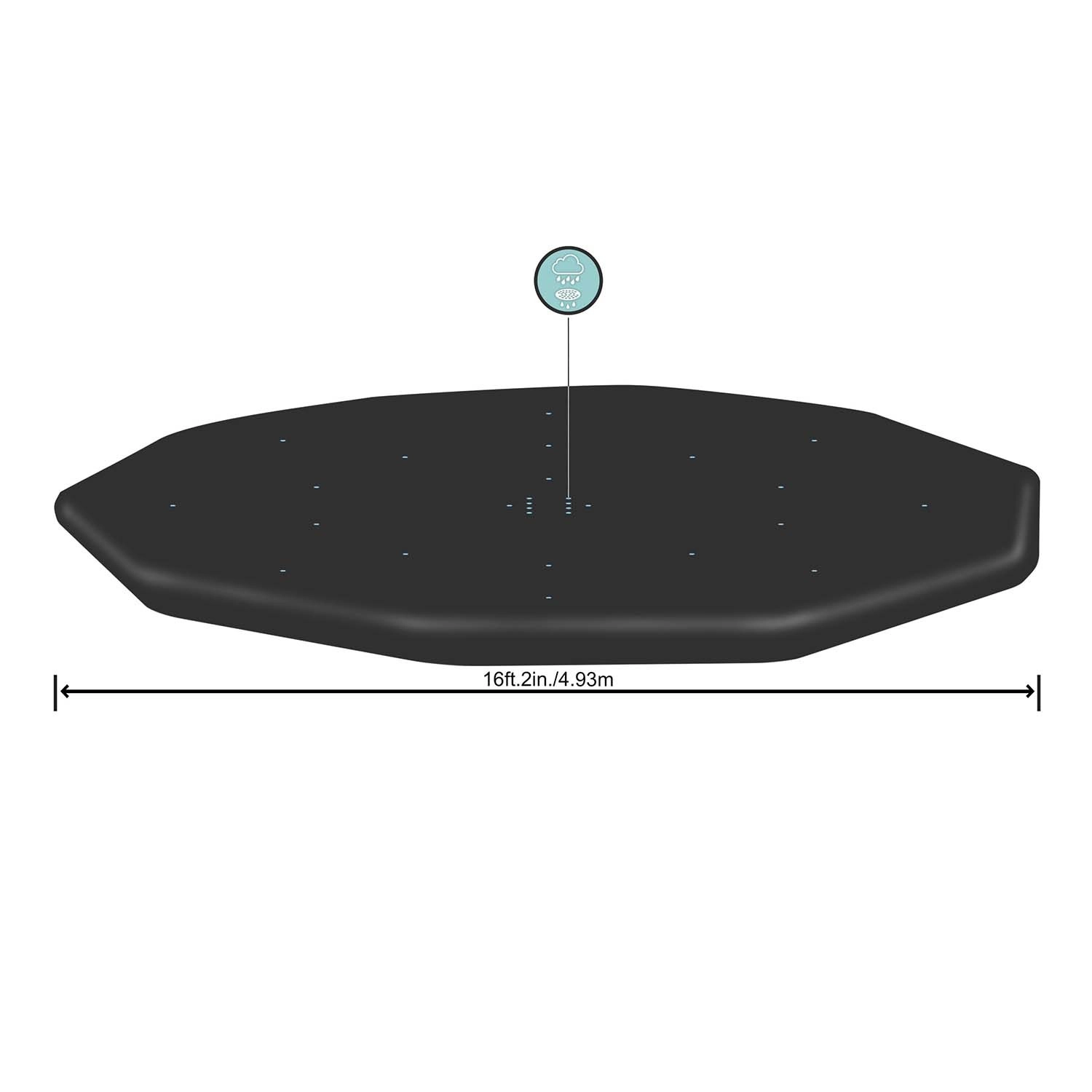La bâche est fabriquée en polyéthylène (PE) robuste, résistant au soleil, au vent et à la pluie, protégeant efficacement l’eau des saletés.
