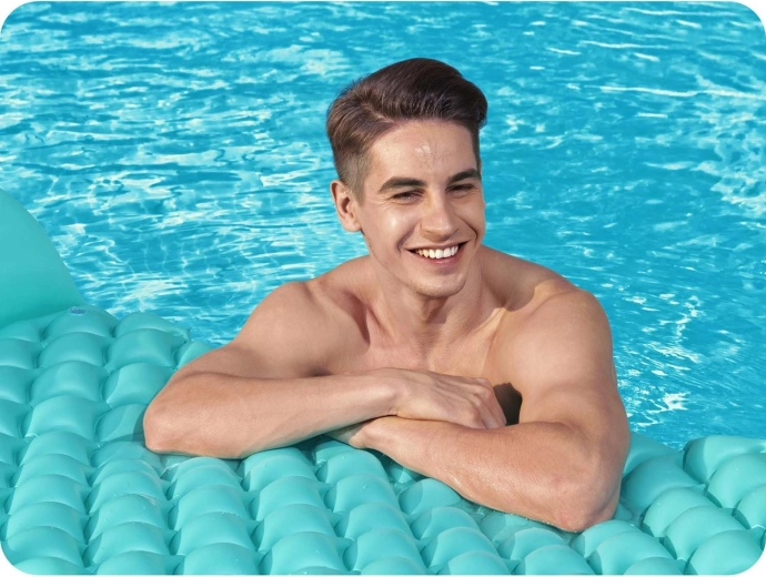 Le matelas flottant avec oreiller intégré offre une position stable et confortable sur l’eau. Grâce au PVC résistant, il convient à la piscine, au lac et à la mer, et une fois dégonflé, vous pouvez facilement le rouler en cylindre et le ranger dans un sac.
