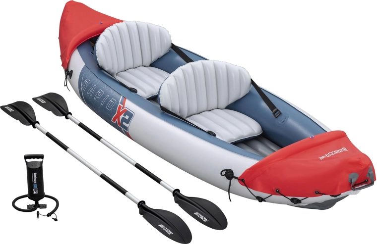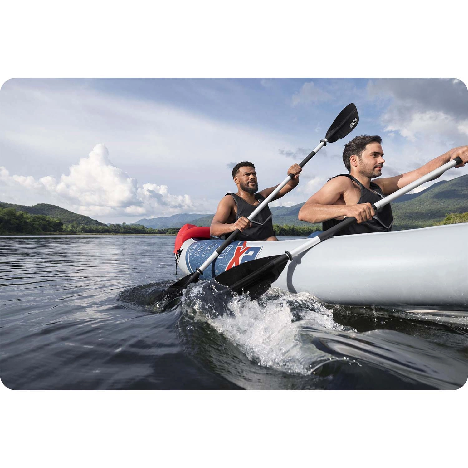 Partez à l’aventure sur l’eau avec le kayak gonflable HYDRO-FORCE Lite Rapid X2 pour deux personnes. Le matériau Inflata‑Shield™ résistant prévient les crevaisons, limite la dilatation et améliore l’adhérence. Le kayak offre un plancher gonflable rigide pour la stabilité, 2 sièges gonflables amovibles pour le confort, 2 pagaies en aluminium, 2 ailerons amovibles pour une meilleure tenue de cap, ainsi qu’une pompe manuelle Air Hammer™ et une rustine de réparation incluses.