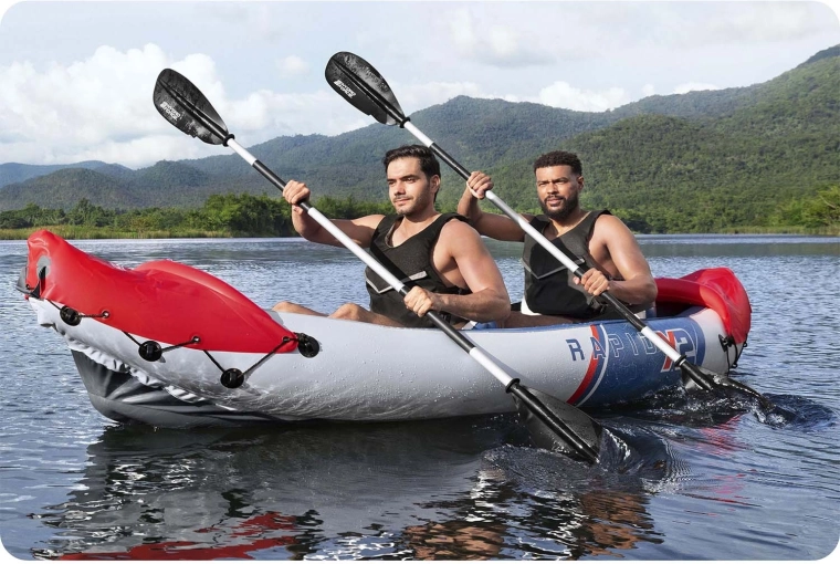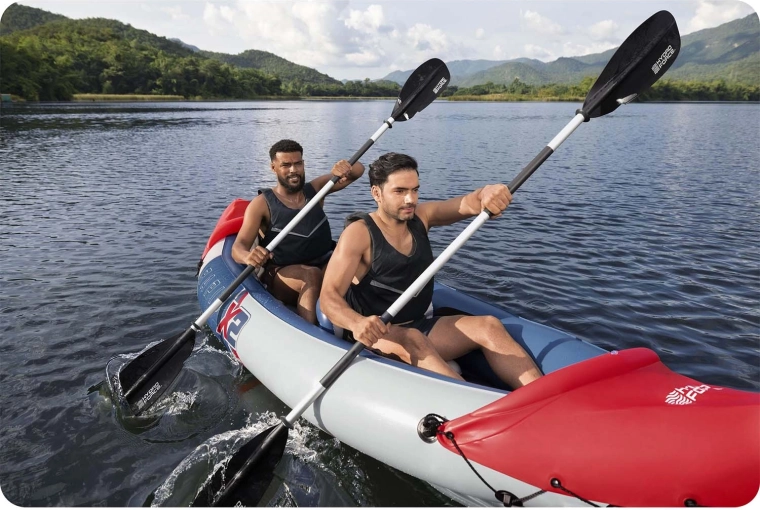 PVC renforcé anti-crevaison qui limite la dilatation et augmente l’adhérence pour une navigation plus sûre et une durée de vie prolongée du kayak.