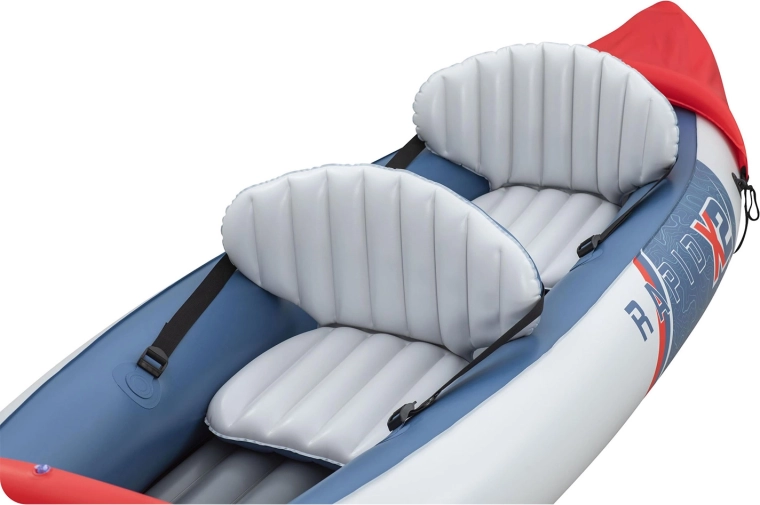 Deux sièges gonflables amovibles avec dossier et un plancher rigide et moelleux assurent confort et stabilité sur l’eau.