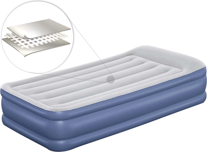 Le matelas gonflable une place BESTWAY offre un confort de sommeil pour les invités comme en déplacement. Grâce à la technologie I‑Beam et au matériau résistant Tritech, il est stable, ferme et conserve sa forme durablement. La pompe électrique 220–240 V intégrée le gonfle en environ 3 minutes. La surface floquée en velours est douce et agréable au toucher.
