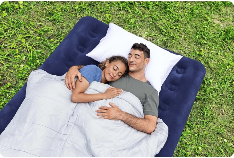 La conception avancée coil-beam (renforts internes) répartit uniformément le poids du corps, assurant un soutien ferme du dos et réduisant les mouvements. Le matelas convient à une utilisation intérieure et extérieure et, grâce à la pompe à piston incluse, il se gonfle facilement sans électricité.