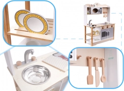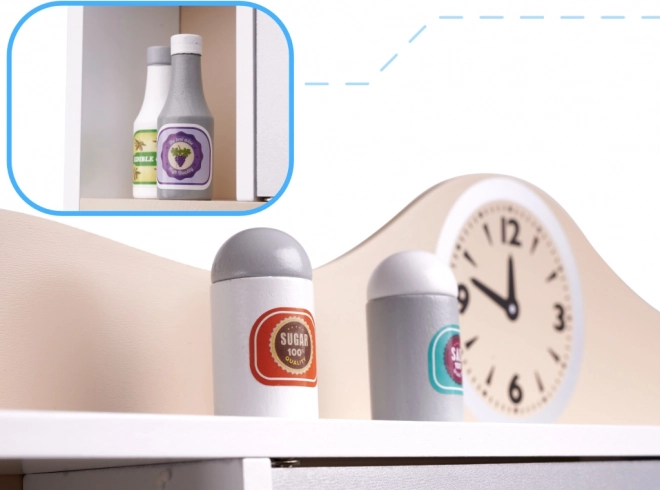Cuisine Enfant en Bois Lulilo Kuketo offre des possibilités infinies de divertissement et de développement pour votre enfant. Cette cuisine comprend des fonctionnalités réalistes, y compris un évier avec robinet, une cuisinière, un micro-ondes, et des espaces de rangement sous forme d'étagères et d'armoires. Les dimensions de la cuisine sont idéales pour les petits enfants, permettant un accès facile à tous les éléments du jouet.