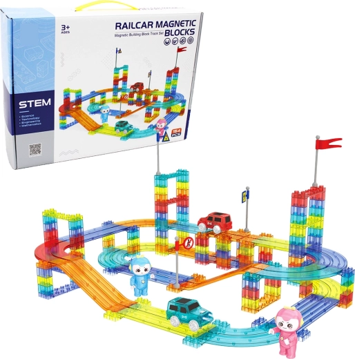 Découvrez un divertissement rapide et une construction créative avec la piste de course magnétique de 154 pièces et deux voitures électriques. Grâce aux connexions magnétiques, vous assemblez facilement une piste stable sous différentes formes. Le plastique et le métal de qualité garantissent une longue durée de vie et un jeu en toute sécurité pour les enfants dès 3 ans.