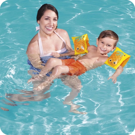 Découvrez le plaisir de l’eau avec les brassards gonflables BESTWAY au design fruité. Deux chambres indépendantes améliorent la flottabilité et le confort en toute sécurité, tandis que les motifs ludiques de pastèque et d’ananas motivent les enfants à apprendre à nager et à jouer dans l’eau.
