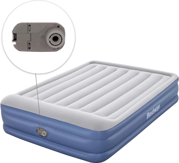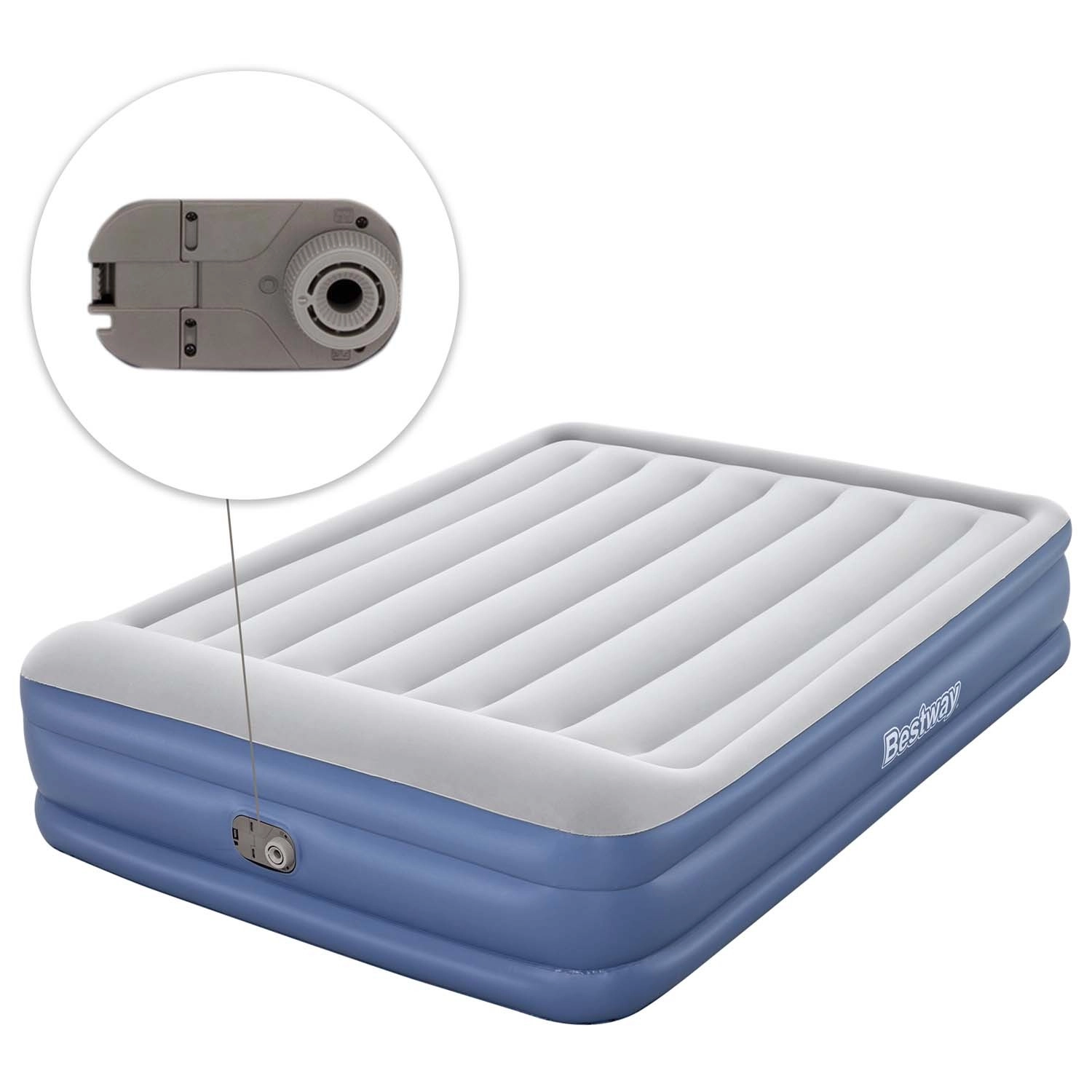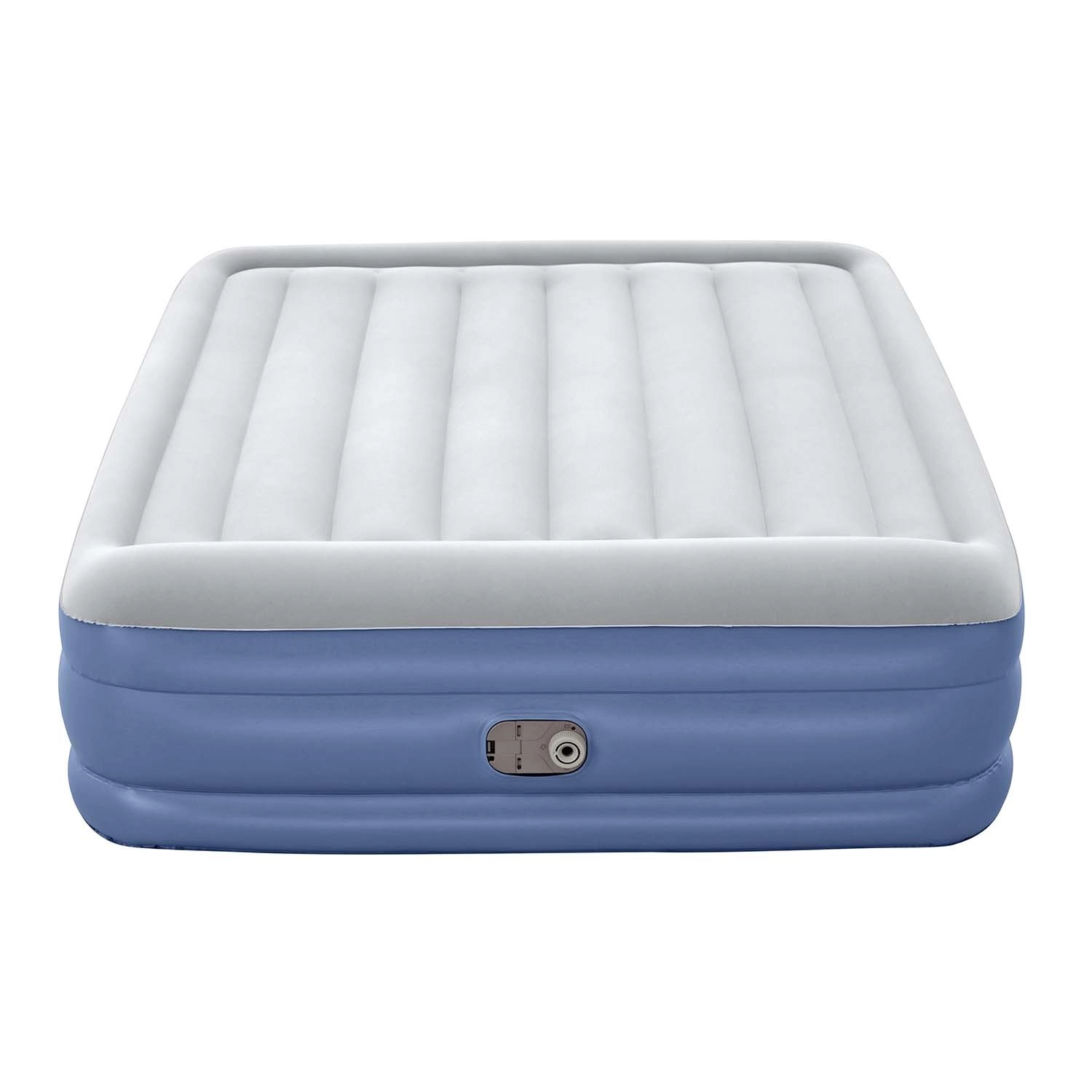 Le lit gonflable double BESTWAY aux dimensions 203 × 152 × 46 cm offre un sommeil confortable pour 2 personnes, un gonflage rapide grâce à la pompe électrique intégrée en environ 4 minutes et une structure I‑beam stable en matériau résistant Tritech. Il dispose d’une surface façon suédine pour plus de confort, d’un rebord faisant office d’oreiller intégré et le colis comprend une housse de transport ainsi qu’un rustine de réparation.