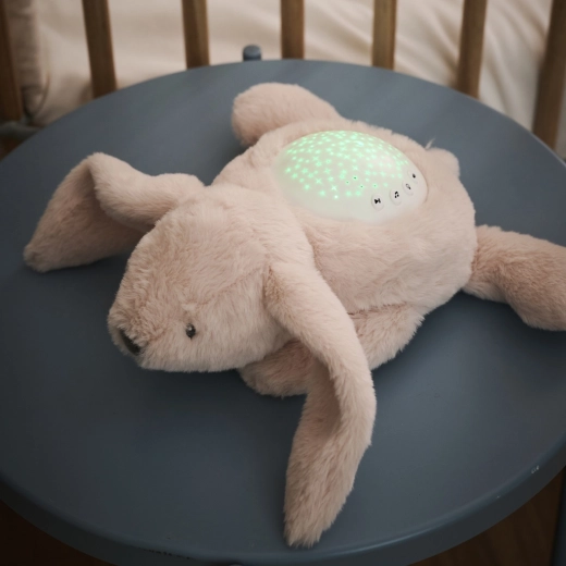 Adorable lapin en peluche avec projecteur intégré et module musical, transformant la chambre d’enfant en une oasis de sommeil paisible. Il offre une projection du ciel étoilé en différentes couleurs, des berceuses apaisantes et des bruits blancs (pluie, vagues, battements de cœur) et des lumières LED sûres qui ne chauffent pas. Grâce à un minuteur de 20 minutes et au volume réglable, il aide les bébés à s’endormir facilement et apporte de la sérénité aux parents.