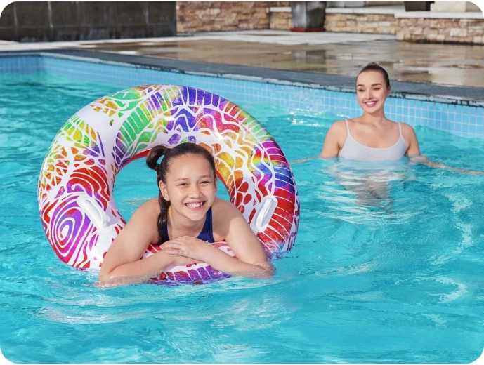 La large bouée offre une meilleure flottabilité et un confort optimal pour les enfants dès 10 ans. Parfaite pour la nage, le repos et les jeux aquatiques.