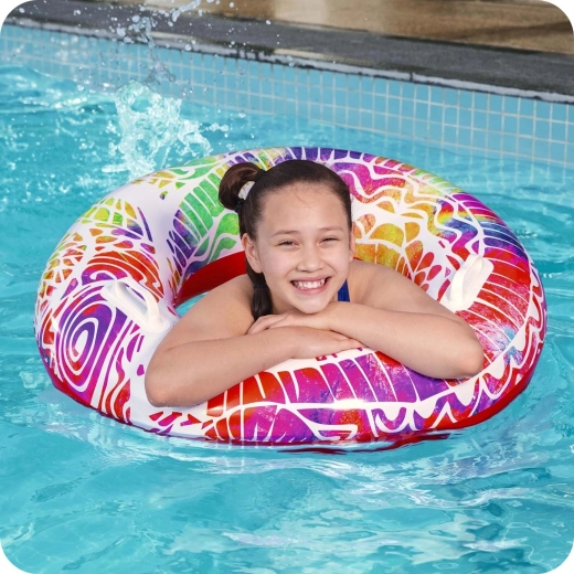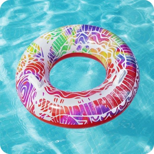 Grâce à son grand diamètre de 91 cm, la bouée offre une meilleure flottabilité et un soutien confortable pour les enfants dès 10 ans et les adolescents de petite taille. Son imprimé arc-en-ciel/mosaïque apporte du style à votre équipement d’été et reste bien visible à la surface de l’eau.