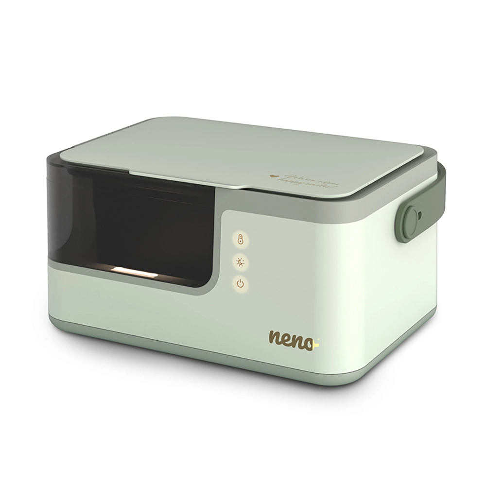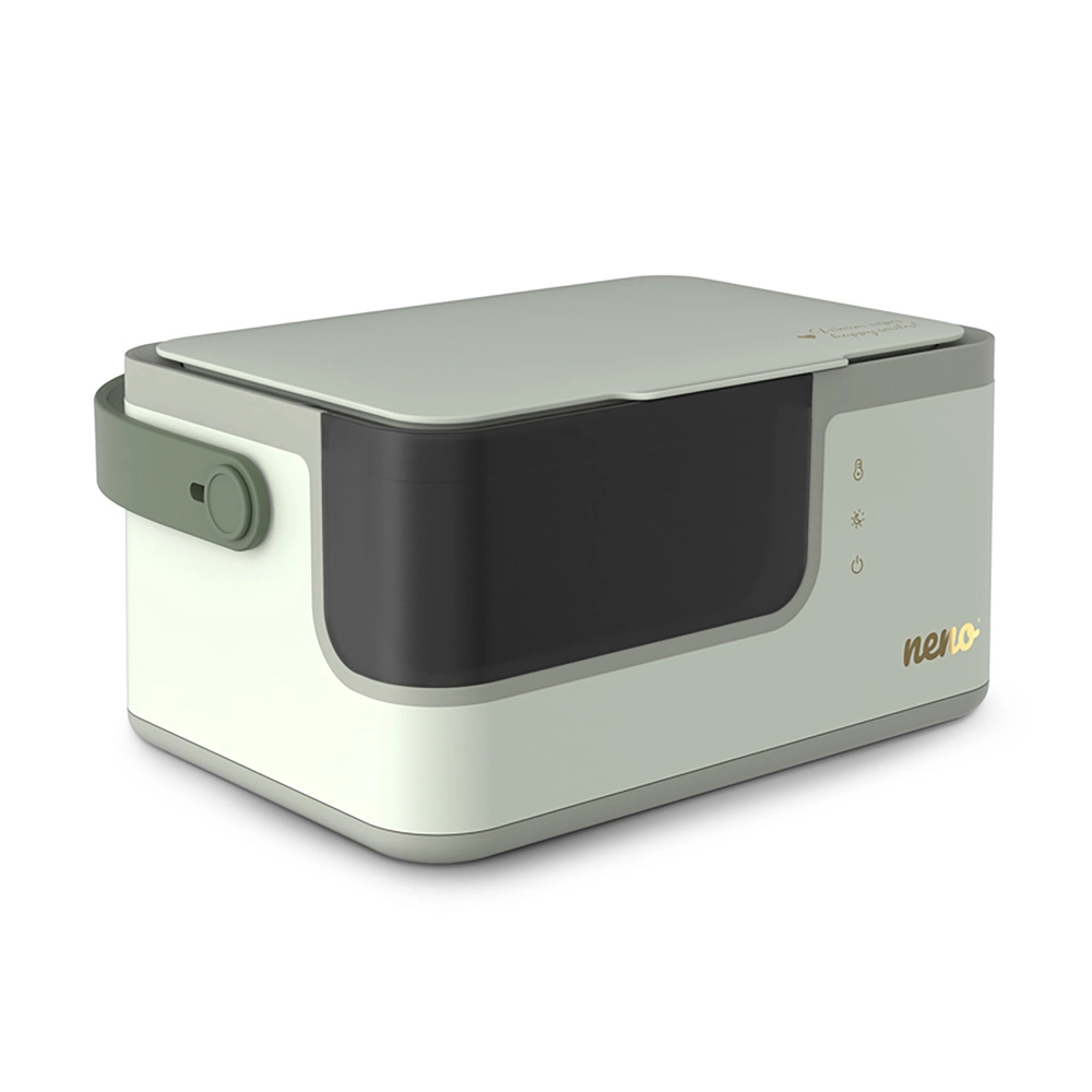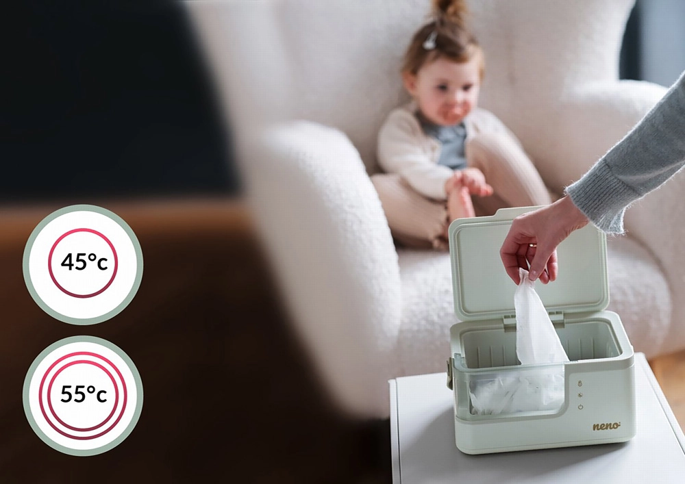 Le chauffe-lingettes humides Neno Abrazo est un allié fiable pour des soins délicats de la peau sensible des bébés. Il permet de choisir deux températures de chauffe (45 °C et 55 °C), afin d’adapter facilement la chaleur aux besoins du moment. Le système intégré de maintien de l’humidité empêche le dessèchement des lingettes pour qu’elles soient toujours prêtes à l’emploi.