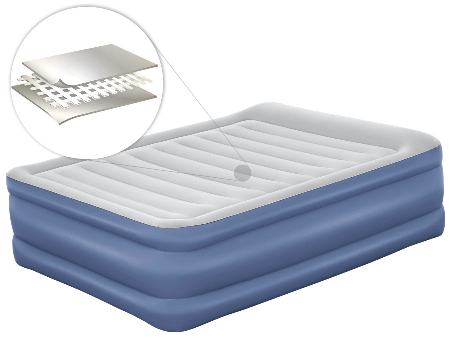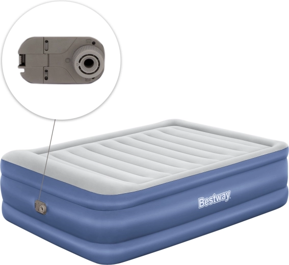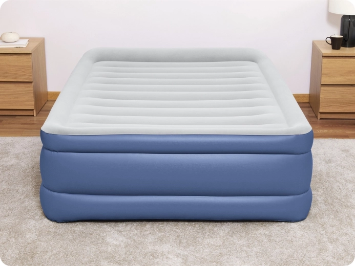 La pompe intégrée 220–240 V gonfle et dégonfle rapidement le matelas. En cas de besoin, il est également possible d’utiliser une pompe externe traditionnelle.
