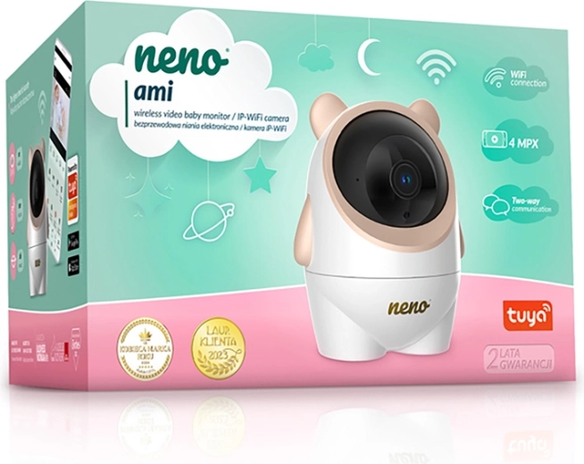 Neno Ami est un babyphone vidéo intelligent qui allie un design adorable à une technologie avancée. Il offre une surveillance détaillée en 4 MP (2560 × 1440 px), une rotation fluide de la tête de caméra et un large angle de 120°. Grâce au mode nuit avec éclairage IR, vous voyez la chambre même dans l’obscurité.