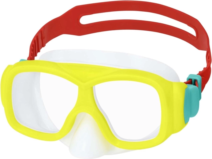 Ce masque de plongée Bestway jaune‑rouge est conçu pour les jeunes nageurs et petits aventuriers. Les lentilles en polycarbonate avec revêtement UV offrent une résistance aux chocs et une vision claire, tandis que la jupe souple s’adapte confortablement à la forme du visage et aide à prévenir les fuites d’eau.