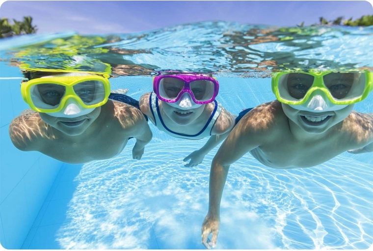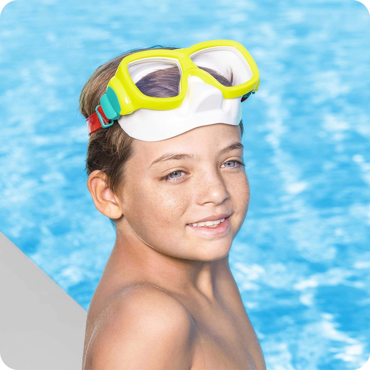 Grâce à sa sangle en silicone réglable, le masque tient fermement et en toute sécurité lors de la nage et des jeux aquatiques. La taille universelle pour enfants, sans composants à base de latex, est idéale pour les peaux sensibles et les activités aquatiques quotidiennes.