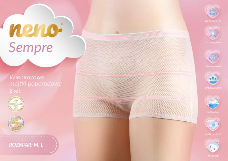 Vous recherchez assurance et confort après l’accouchement ? Les culottes post-partum Neno Sempre, en blanc universel avec de délicats détails roses, offrent un léger maintien du ventre, une ventilation optimale grâce à la maille et un frottement minimal grâce à la conception sans coutures. Idéales avec des protections post-partum, elles aident à maintenir l’hygiène tout au long de la journée.