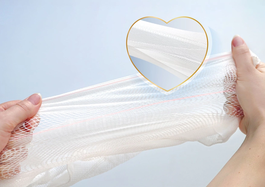 Une structure douce et élastique, sans coutures gênantes, minimise les frottements et la pression, réduisant ainsi le risque d’irritations ou de marques.